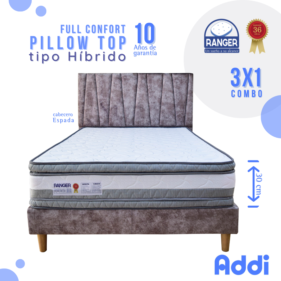 Cama Full Confort Pillowtop Híbrido 10 Años 100 x 190