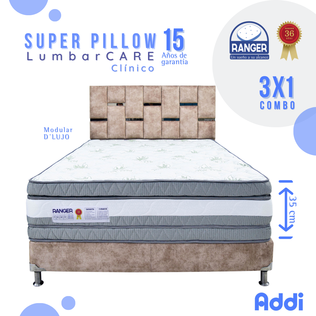 Cama Super Pillow Lumbarcare Clínico 15 Años 200 x 200