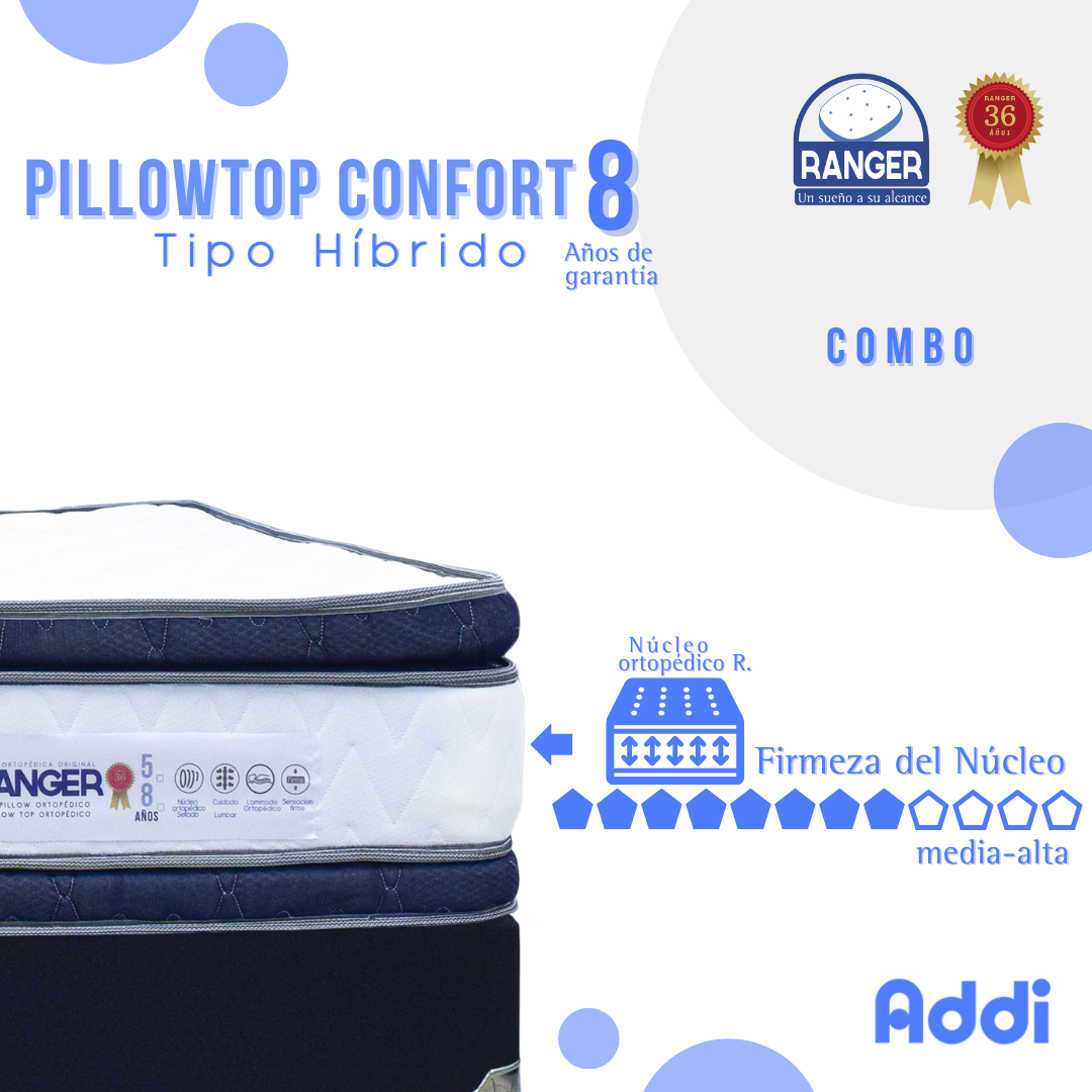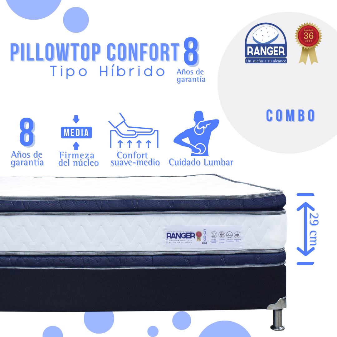 Combo Pillowtop Confort Tipo Híbrido 8 años