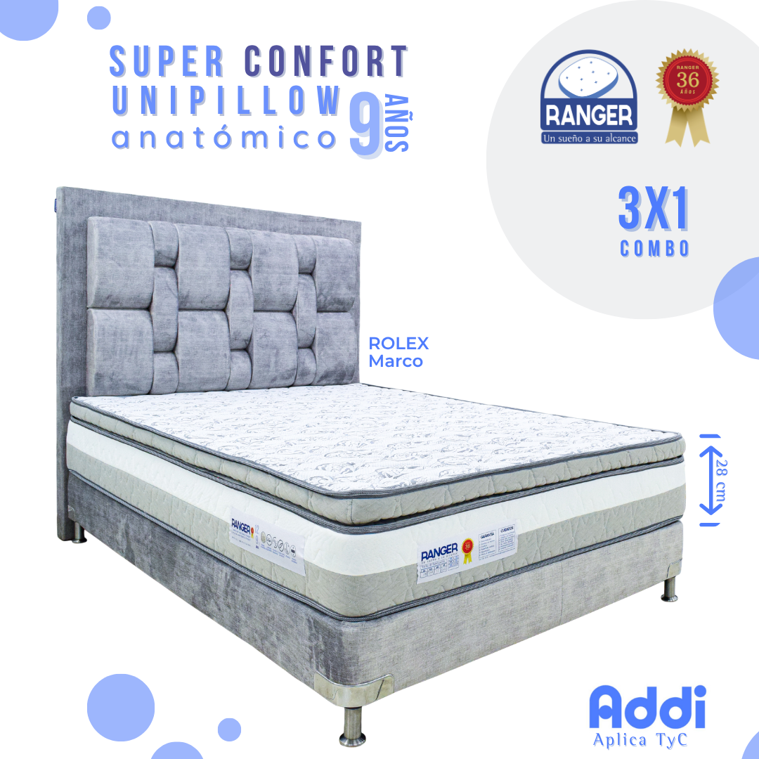 Un colchón TECNOLÓGICO de mucha suavidad y DELICADEZ AL PUNTO DE APOYO. Brinda la MÁXIMA ESTABILIDAD y duración superior. NO SE DEFORMA ni sufre de EFECTO CANOA.