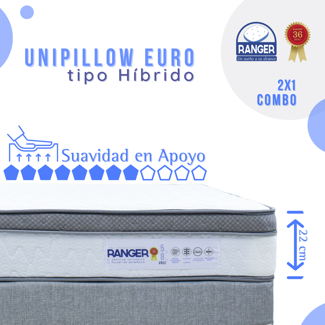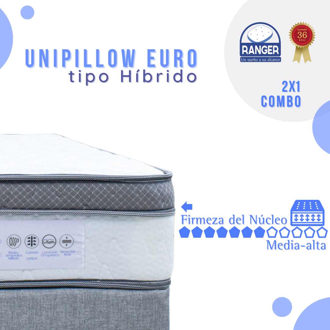 Combo Unipillow Euro Tipo Híbrido 5 Años 100 x 190